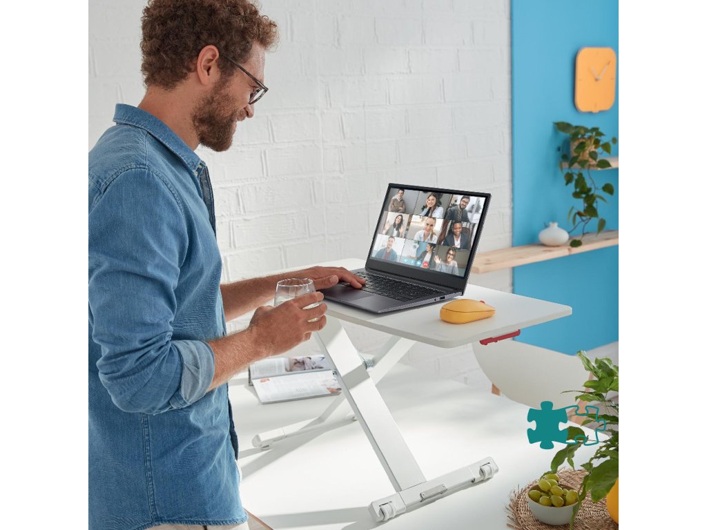 Tento „stôl na stole“ sa dá rýchlo nastaviť na požadovanú výšku a premení akýkoľvek bežný stôl na mobilný pracovný priestor, ktorý sa ľahko prispôsobí a zároveň zostáva pevný a stabilný v akejkoľvek výške. Pneumaticky asistované nastavenie bez námahy zdvihne dosku stola do požadovanej výšky, pohyb je vedený priamo hore a dole v jednej stope, čo šetrí miesto. Farba sivá.Dodatočné parametre