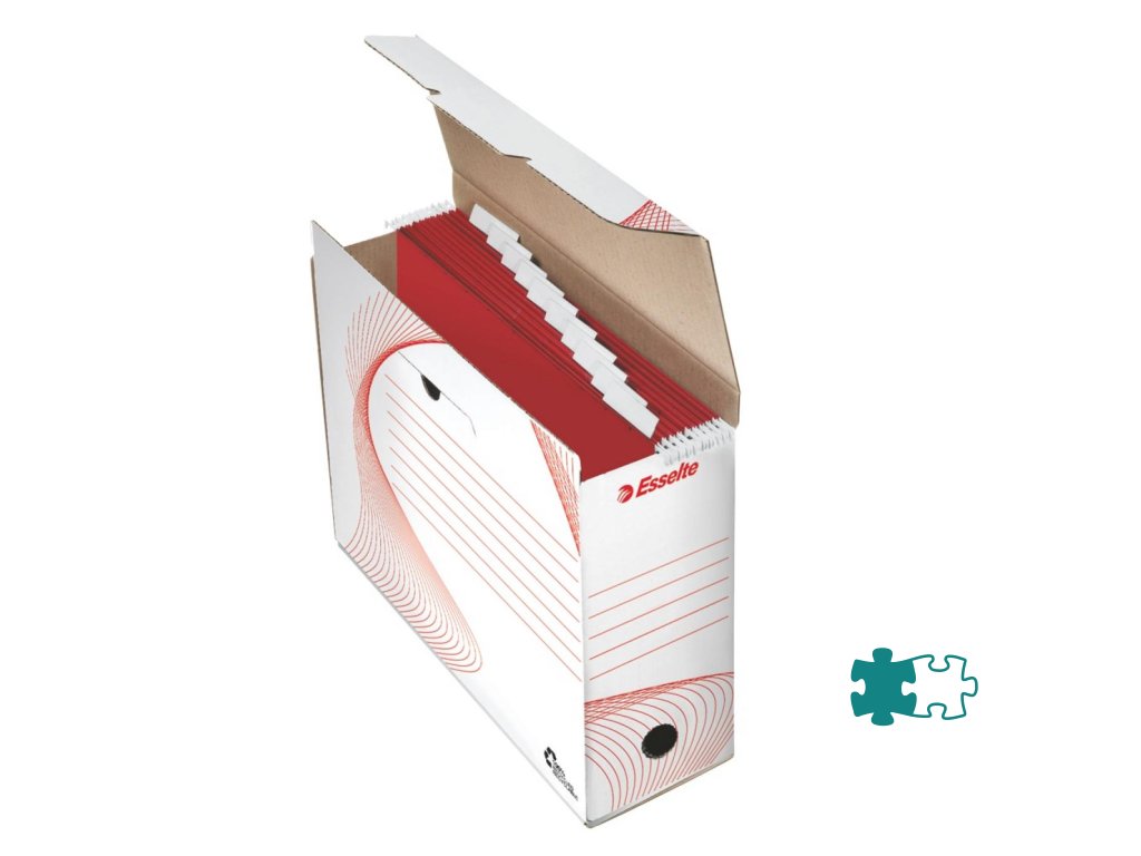 Škatuľa určená na archiváciu dokumentov v závesných obaloch. Šírka chrbta 116 mm. Otvor pre ľahké uchopenie, potlač na kratšej i dlhšej strane umožňuje archiváciu vo vodorovnej i zvislej polohe. Balenie 10 ks. Kapacita 10 závesných obalov.Rozmery (š x v x h): 117 x 285 x 337mm