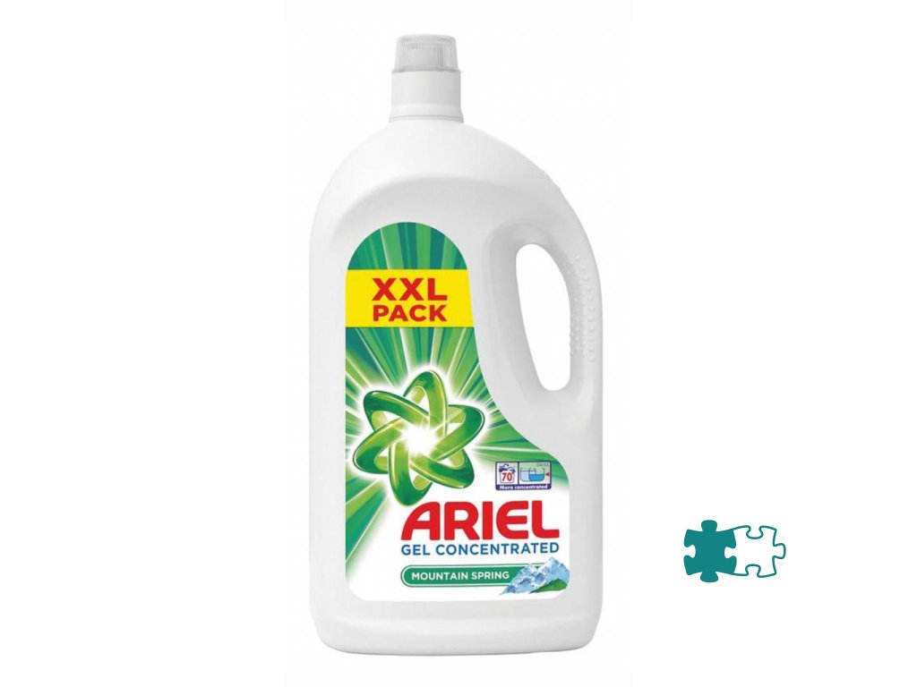 ARIEL okrem svojej vysokej účinnosti odstraňuje škvrny a uchováva žiarivosť farieb prádla. ARIEL Mountain Spring je vhodný na biele a svetlé prádlo. Výdatnosť 70 pracích dávok.Dodatočné parametre