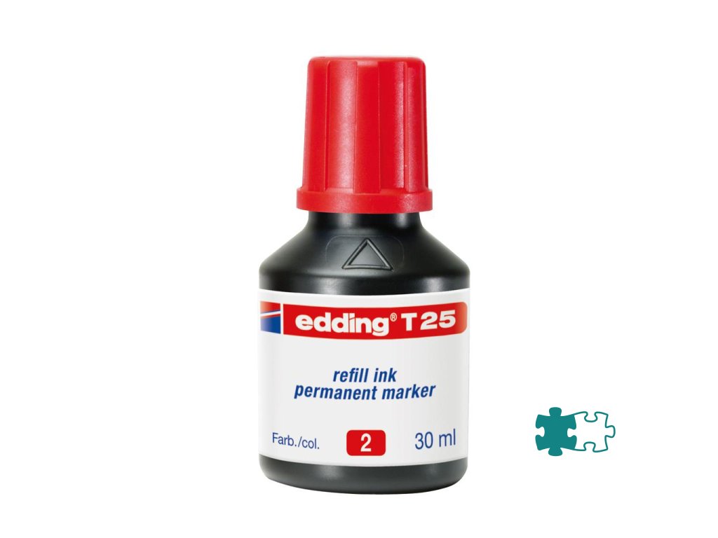 Atrament s kvapkovým dávkovačom na dopĺňanie permanentných popisovačov edding 2000 C, 2200 C, 400, 500, 550, 800, 850, 370 a 390. Pri dopĺňaní vložte prednú časť popisovača špičkou do fľaštičky a po niekoľkých minútach bude popisovač pripravený k opätovnému použitiu. Obsah 30 ml. Tento chemický prípravok je nebezpečný.Farba: červená
