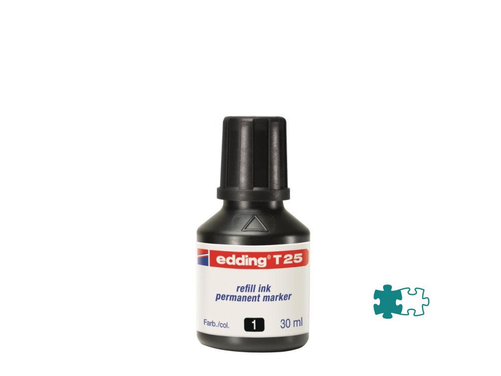 Atrament s kvapkovým dávkovačom na dopĺňanie permanentných popisovačov edding 2000 C, 2200 C, 400, 500, 550, 800, 850, 370 a 390. Pri dopĺňaní vložte prednú časť popisovača špičkou do fľaštičky a po niekoľkých minútach bude popisovač pripravený k opätovnému použitiu. Obsah 30 ml. Tento chemický prípravok je nebezpečný.Farba: čierna