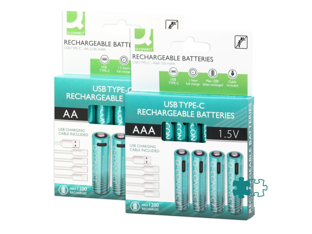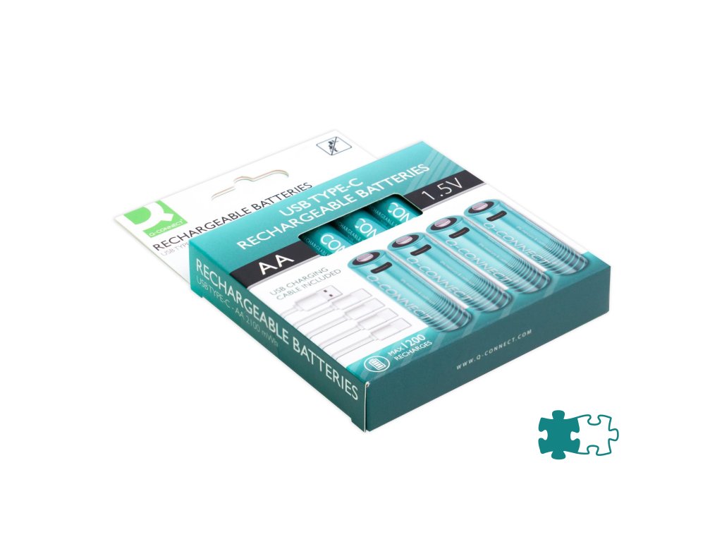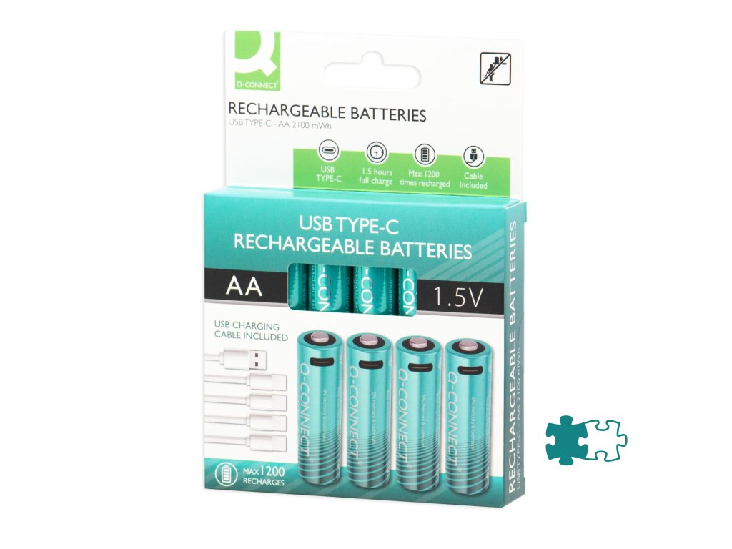 Nabíjteľné AA batérie Q-Connect, ktoré je možné jednoducho nabiť pomocou pripojenia USB-C, rovnako ako napríklad telefón. Doba doba nabíjania je 2-3h. Súčasťou balenia sú 4 ks nabíjateľných batérií a 1 ks kábla.Dodatočné parametre