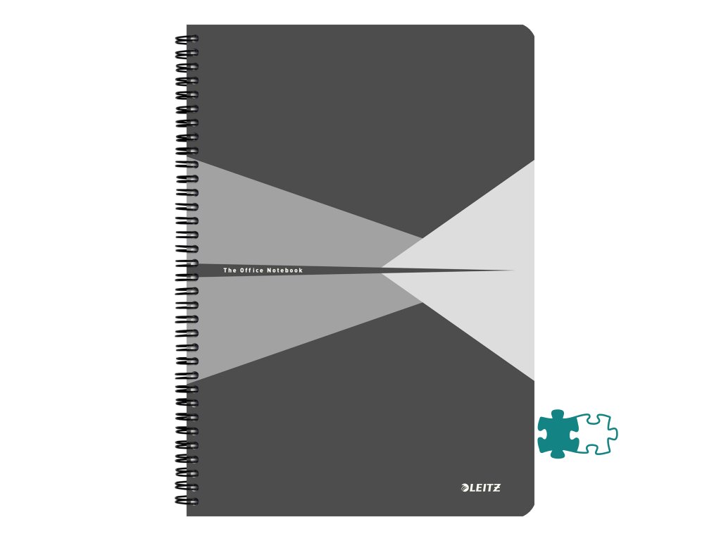 -Drôtená väzba umožňuje otvorenie poznámkového bloku v rozsahu 360 stupňov, prehnutý na polovicu môže poslúžiť ako podložka na písanie poznámok na cestách.