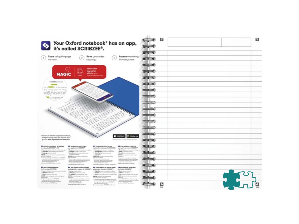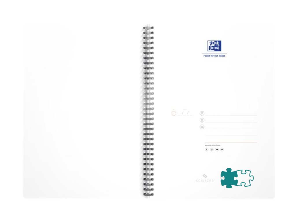 Blok s dvojitou špirálou, ktorá zabezpečuje otváranie strán o 360 °. Kompatibilný so SCRIBZEE. Listy s perforáciou a dierovaním, 6 mm linkovanie so záhlavím. Dosky z mäkkého, odolného laminovaného kartónu. Extra jemný a hladký papier Optik gramáže 90 g/m², u ktorého nedochádza k presakovaniu atramentu na druhú stranu. Vnútorné a vonkajšie okraje. Dodávané v mixe farieb. Formát A4. 90 listov. Úprava linajková.Dodatočné parametre