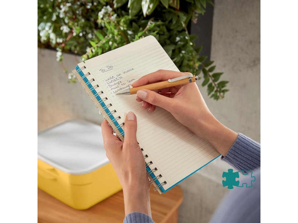 Krúžková drôtená väzba umožňuje otvorenie zápisníka o 360 °, takže si môžete ľahko robiť poznámky za pohybu