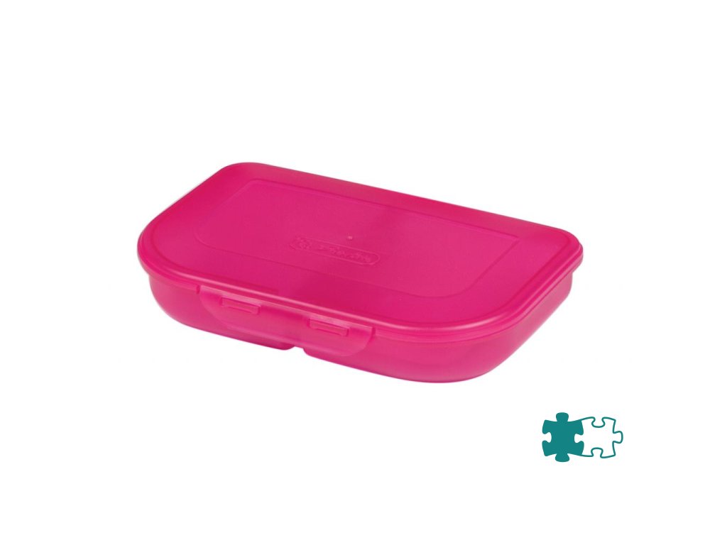 Box na desiatu ružový - dvojdielny s uzáverom, plastový, vhodný na potraviny, možnosť umývania v umývačke.Dodatočné parametre
