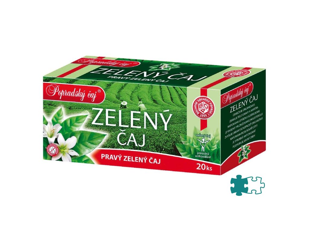 Pravý zelený čaj. Balenie 20 × 1,5 g. Vhodný doplnok pitného režimu.