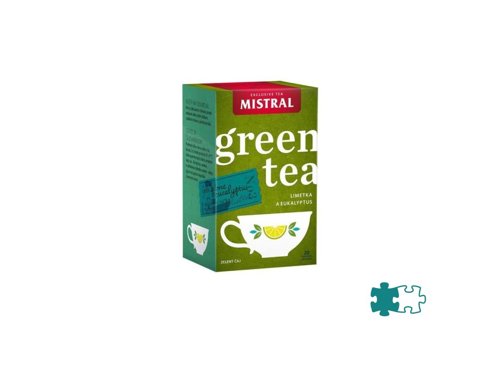 Mistral - Aromatizovaný zelený čaj s príchuťou limetka a eukalyptus, porciovaný v nálevových vreckách. Balenie 20 × 1,5 g, hmotnosť 30 g.