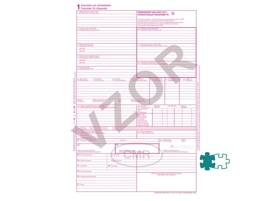 Evidenčné a colné tlačivá. CMR, 5 listov, balenie 100 súprav. Samoprepis.Dodatočné parametre