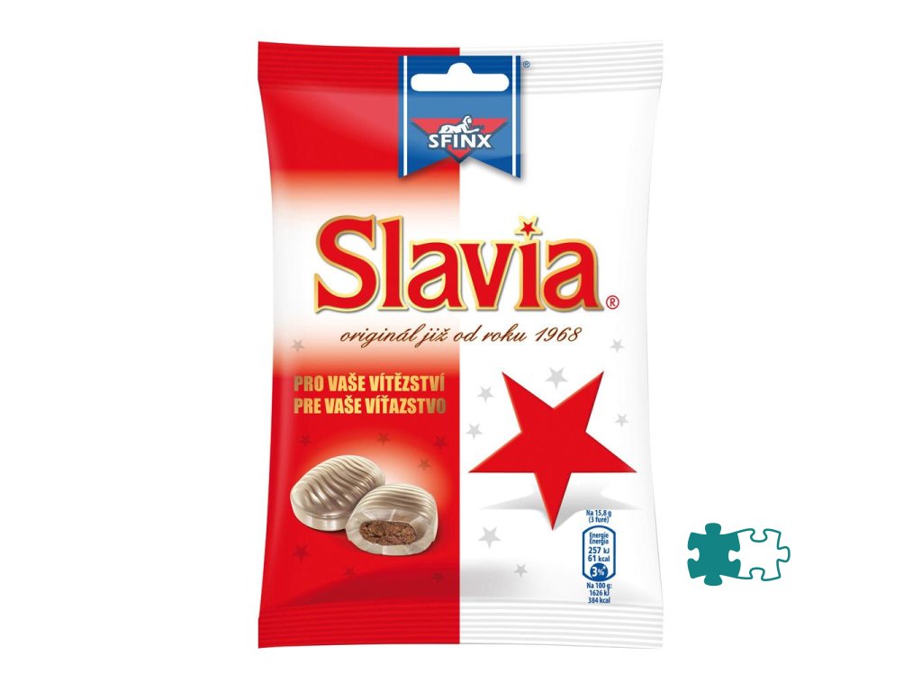 Furé s kakaovou náplňou a mätovou príchuťou.Cukríky Slavia - pre Vaše víťazstvo.