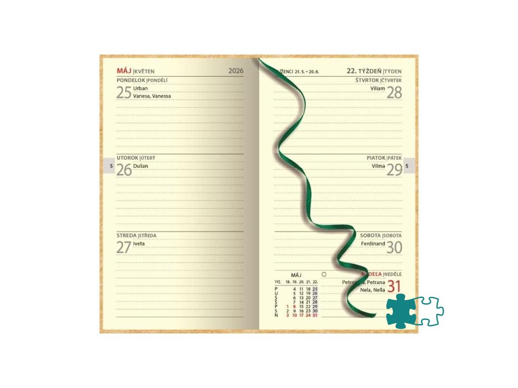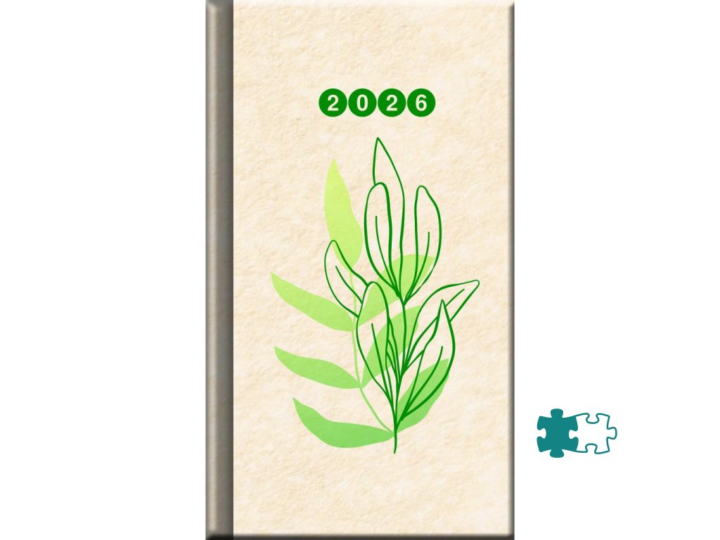Certifikovaný týždenný mini diár s prehľadným slovenským kalendáriom na každý týždeň. Na obal je použitý vysokokvalitný papier NAPURA s prírodným dizajnom, 100 % recyklovateľný, s lacetkou. Vďaka vysokej kvalite vlákien je možná: termorazba, razba fóliou alebo ÚV tlač.Formát: 80 x 140
