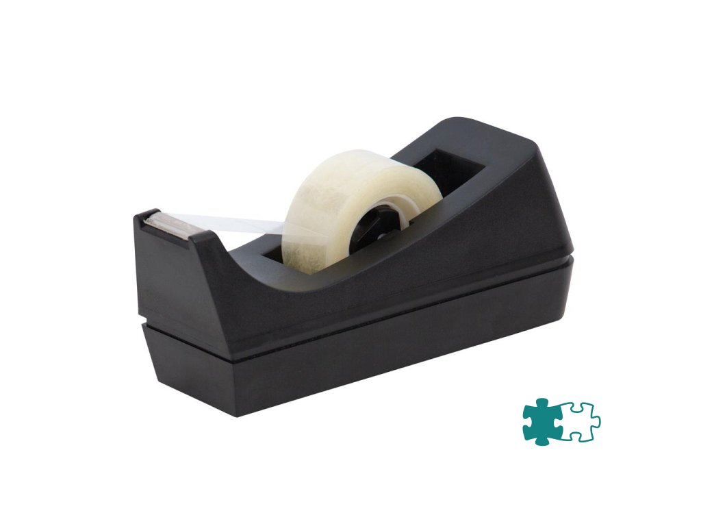 Stolový zásobník na lepiacu pásku rozmerov 19 mm × 33 m s nožom na odrezanie pásky. Dodávaný bez pásky. Farba čierna.Dodatočné parametre