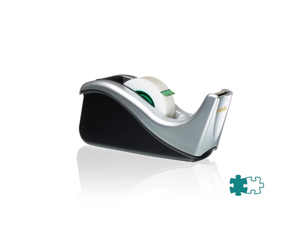 Vyvážený odvíjač pásky na jednoduché odvinutie a odrezanie pásky jednou rukou. S odvíjačom pásky Scotch® vždy nájdete koniec lepiacej pásky