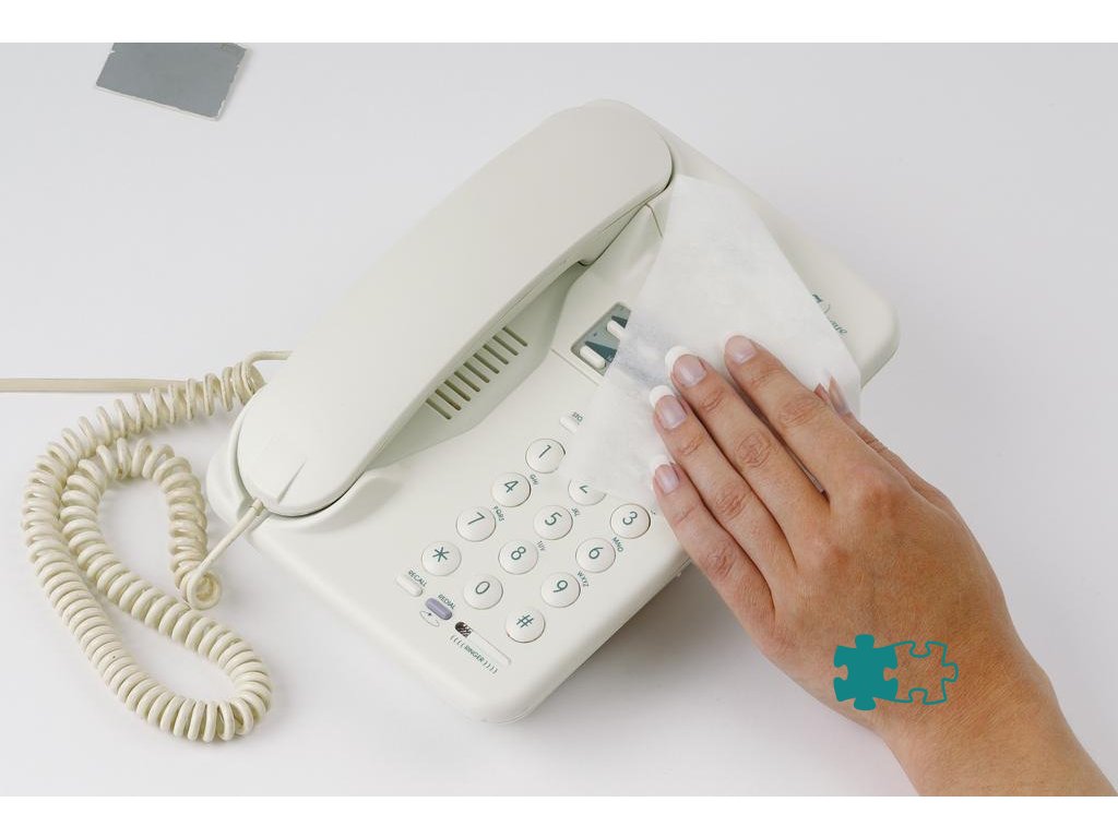Čistiace utierky na čistenie telefónov a pevných povrchov z plastu, ako sú kryty a povrchy tlačiarní, telefónov a kancelárskeho vybavenia. Praktické balenie - dóza so 100 útržkami oddelenými perforáciou.Biologicky odbúrateľný.