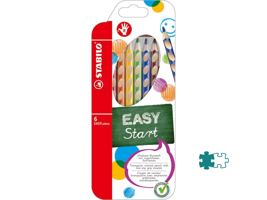 Prvá ergonomicky tvarovateľná farebná ceruzka vyrobená osobitne pre pravákov. Trojhranný dizajn a protišmykové plochy pre uvolnené držanie. Priemer tuhy 4,2 mm. Dodávaná v sade 6 ks.Dodatočné parametre