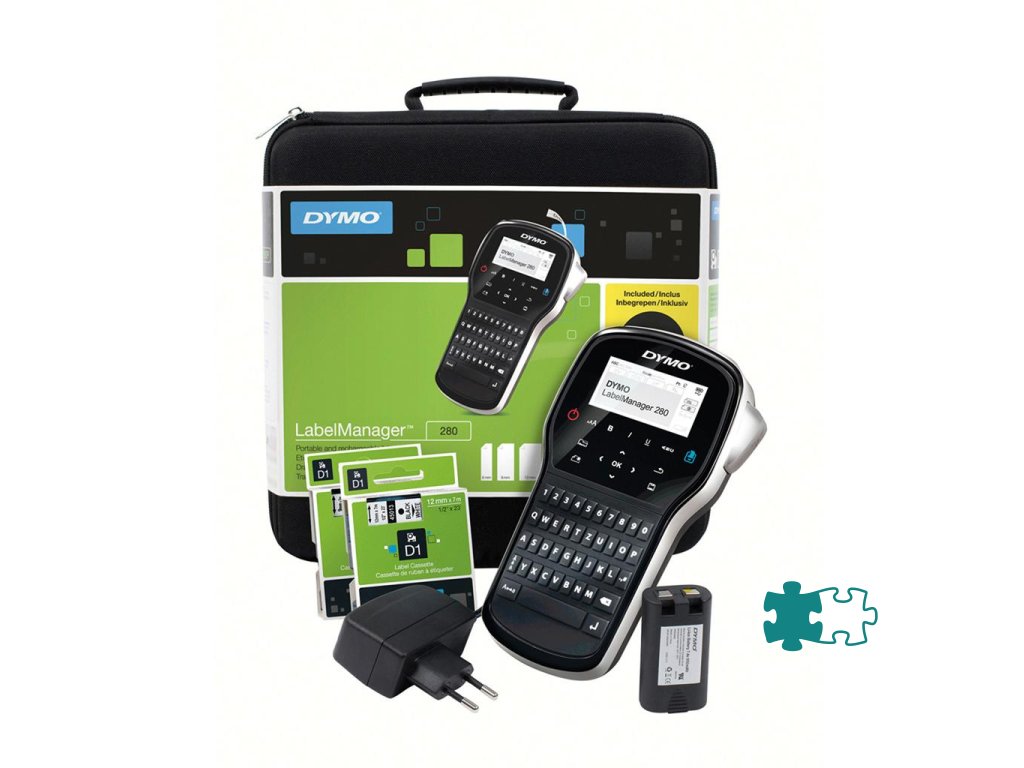 Nové prenosné etiketovacie zariadenie s dobíjacím batériovým blokom balené v praktickom kufríku a možnosťou pripojenia k PC cez USB bez potreby adaptéru alebo batérií. Tlačí na pásky D1 šírky 6, 9 a 12 mm. Klávesnica počítačového typu QWERTY pre ľahké a rýchle zadávanie textu, rýchly prístup ku špeciálnym symbolom vrátane interpunkcií, symbolom mien a diakritiky,funkcia automatického vypínania. Technické parametre: 2-riadkový 13-znakový semi-grafický displej, slovenská diakritika, QWERTY klávesnica, 222 symbolov a obrázkov, 8 druhov rámčekov, 3 fonty, 7 štýlov písma,6 veľkostí písma, funkcia uloženia textu, pamäť na uloženie posledných 9 štítkov, ručný odstrih pásky, USB pripojenie. Balenie obsahuje: štítkovač LabelManager 280, Nabíjateľná batéria, USB kábel, Štartovacia kazeta na štítky D1, čierna na bielej, 12 mm x 3 m, Karta rýchleho spustenia, Nabíjací adaptér.
