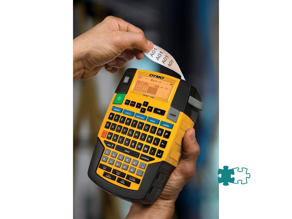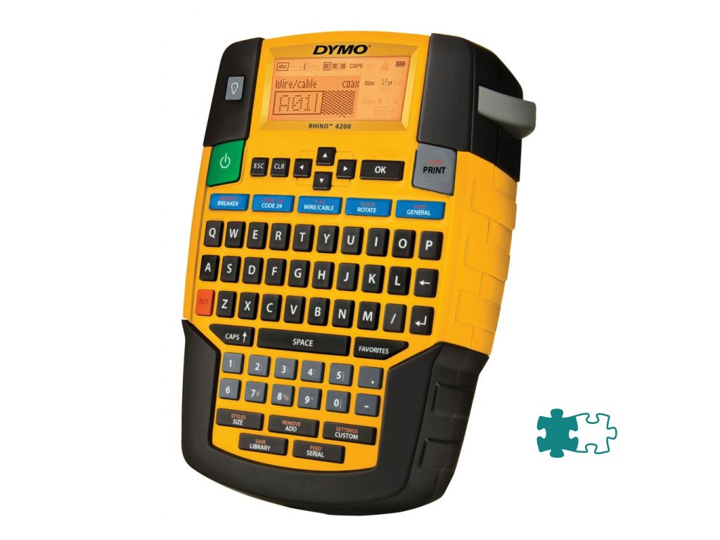 Priemyselný kompaktný a časovo úsporný model etiketovacie zariadenia pre profesionálov. Klávesnica počítačového typu QWERTY s jednoduchou navigáciou, jednodotykové prístupové tlačidlá na vytváranie a formátovanie štítkov na vodiče, káble, vlajočky, čiarových kódov Code 39 a Code 128, štítkov s pevnou dĺžkou, univerzálnych štítkov a štítkov rozvádzačov. Nové tlačidlá Favorites (prístup k často používaným štítkom, symbolom a výrazom) a Custom, ktoré umožňuje uložiť vlastné nastavenie a vyhnúť sa opakovaniu krokov. Rhino™ 4200 tlačí na štítky z flexibilného nylonu, vinylu a permanentného polyesteru, ale tiež na štandardné pásky D1. Napájanie 6 batériami AA, adaptérom alebo cez dobíjateľný batériový blok pri súčasnom zakúpení adaptéra. Batérie, adaptér, ani dobíjateľný blok nie sú súčasťou balenia.Dodatočné parametre