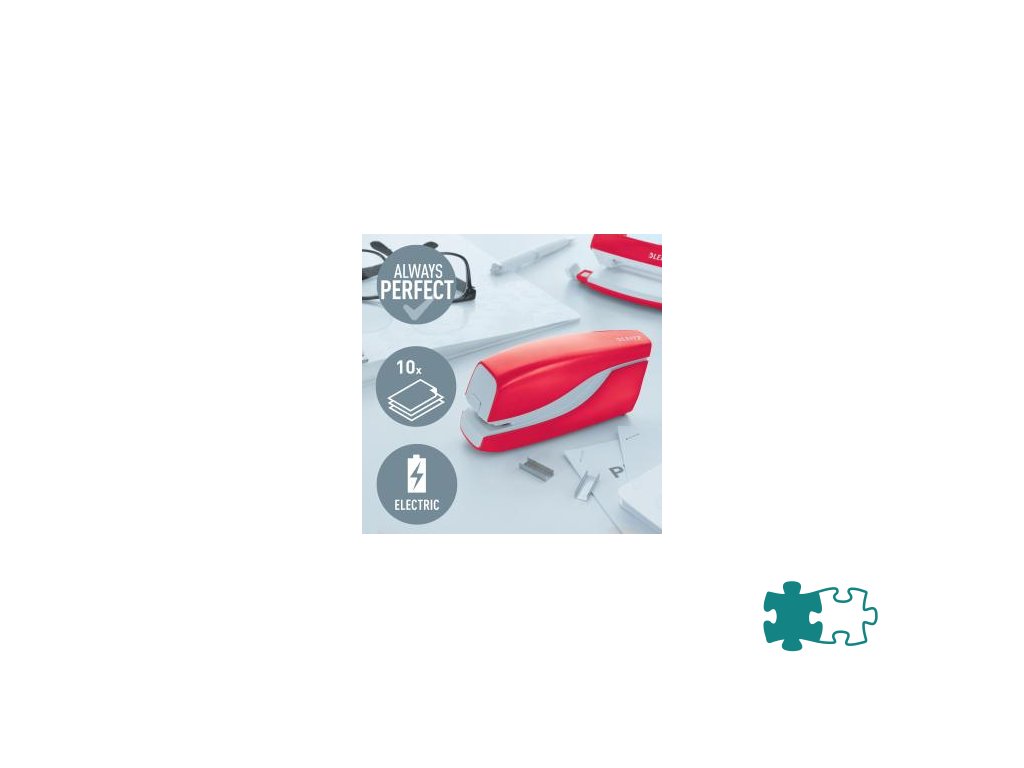 Elektrická zošívačka Leitz New NeXXt WOW. Vďaka jednoduchému ovládaniu jednou rukou je ideálna na časté používanie. Technológia s napájaním na batérie na zošívanie v pohybe. V žiarivých farbách WOW. Batérie (4× 1,5 V AAA LR03) nie sú súčasťou balenia. Kapacita 10 listov. Náhradné spinky ES556800. Farba červená.Dodatočné parametre