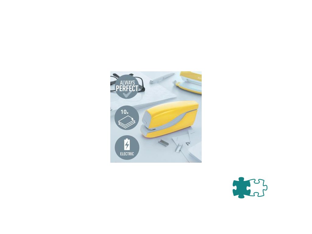 Elektrická zošívačka Leitz New NeXXt WOW. Vďaka jednoduchému ovládaniu jednou rukou je ideálna na časté používanie.Technológia s napájaním na batérie na zošívanie v pohybe. V žiarivých farbách WOW. Batérie (4× 1,5 V AAA LR03) nie sú súčasťou balenia. Kapacita 10 listov. Náhradné spinky ES556800. Farba žltá.