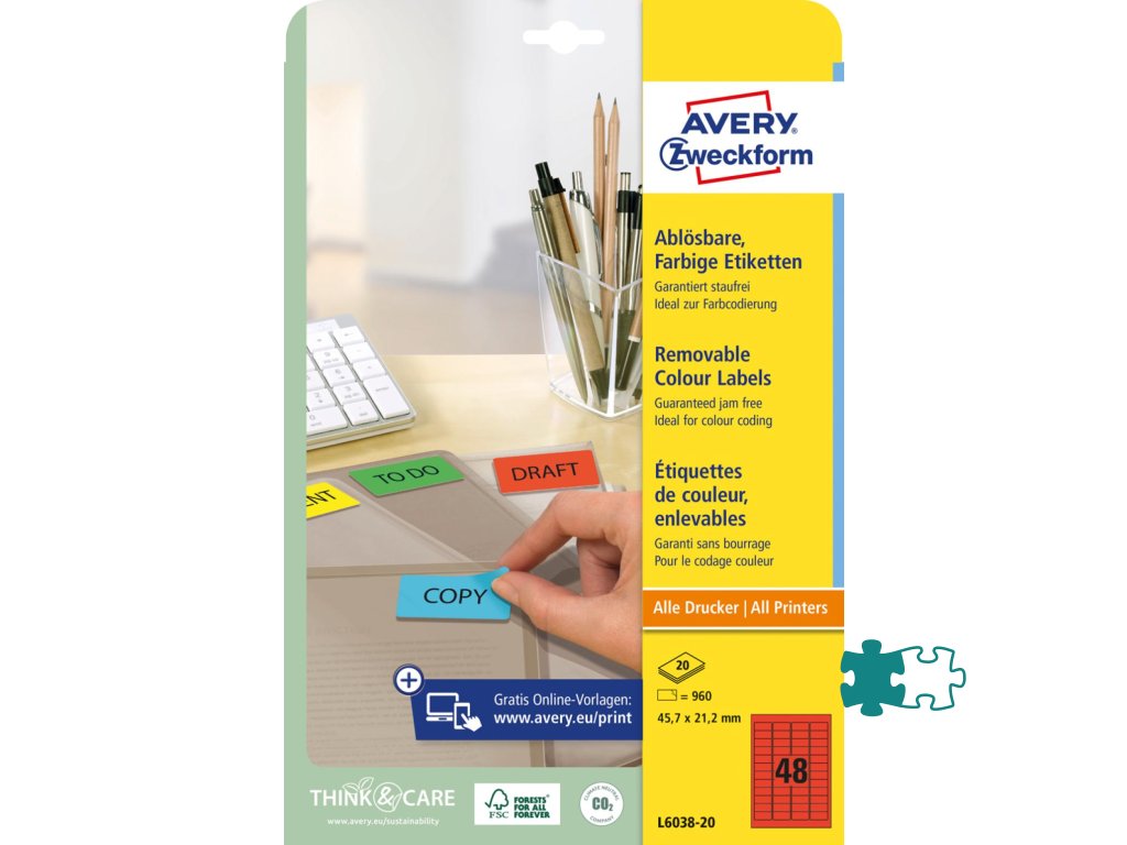 Odnímateľné samolepiace etikety STICK & LIFT odlepiteľné a znovu prelepiteľné (na bežnom povrchu až 5×) bez toho, aby zanechali stopy lepidla. Sú vhodné pre všetky druhy tlačiarní a kopíriek. Využiteľné najmä na každodenné pracovné činnosti, ako napr. vytváranie popisov, cenoviek, označovanie výrobkov, majetku a pod. Farba červená. Etikety na hárku 48 ks. Balenie 20 hárkov.Dodatočné parametre