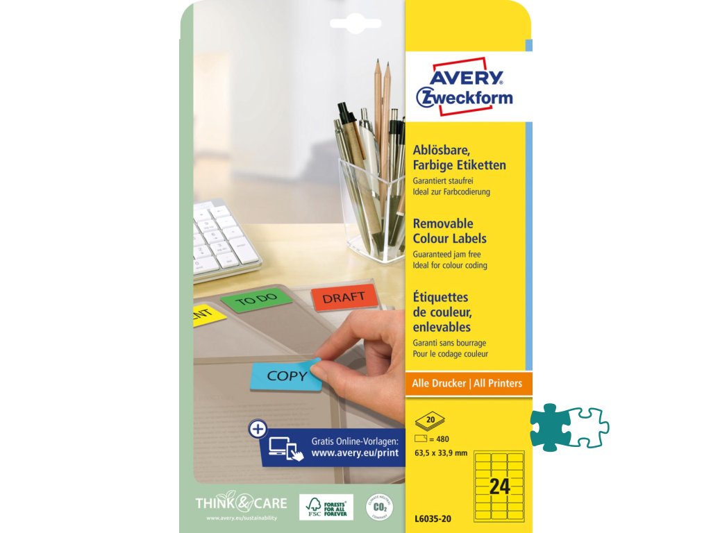 Odnímateľné samolepiace etikety STICK & LIFT odlepiteľné a znovu prelepiteľné (na bežnom povrchu až 5×) bez toho, aby zanechali stopy lepidla. Sú vhodné pre všetky druhy tlačiarní a kopíriek. Využiteľné najmä na každodenné pracovné činnosti, ako napr. vytváranie popisov, cenoviek, označovanie výrobkov, majetku a pod. Farba žltá. Etikety na hárku 24 ks. Balenie 20 hárkov. Rozmery 63,5 x 33,9 mm.Dodatočné parametre