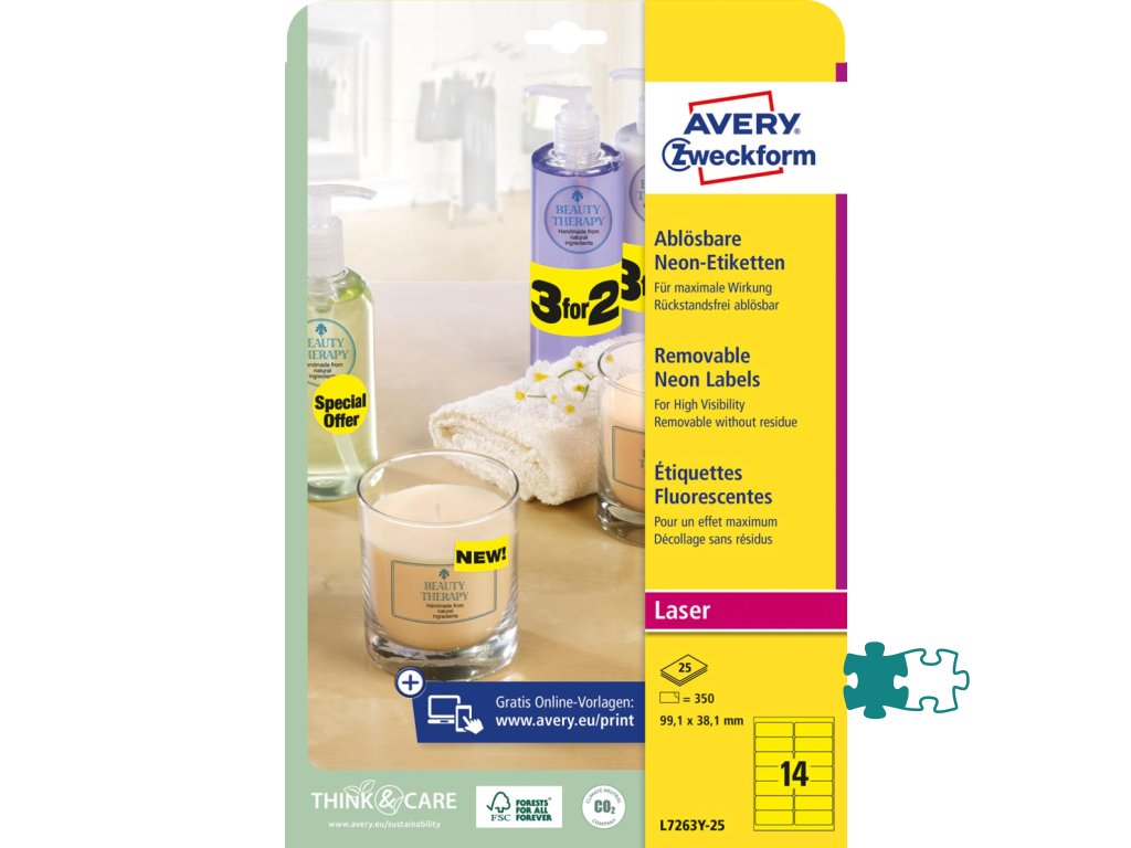 Etikety Avery odnímateľné 99,1x38,1 mm neónové žlté