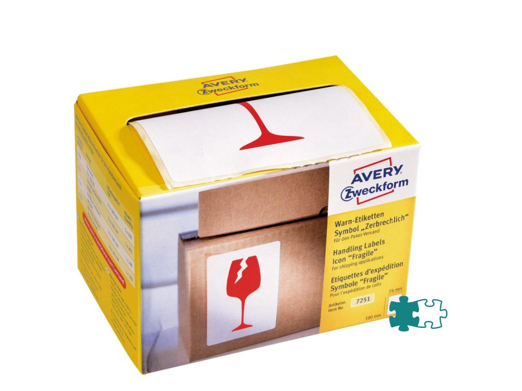 Etikety Avery s varovným symbolom ’ Krehké’ 74x100mm na kotúči