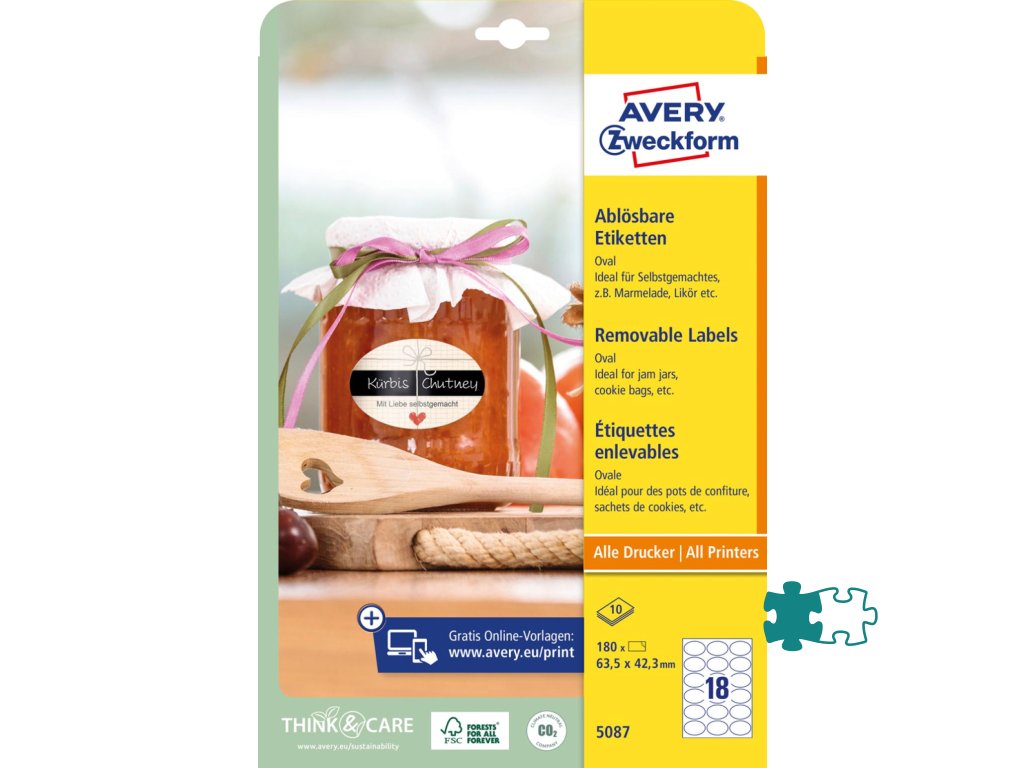 Etikety oválne 63,5x42,3mm Avery 10 hárkov biele