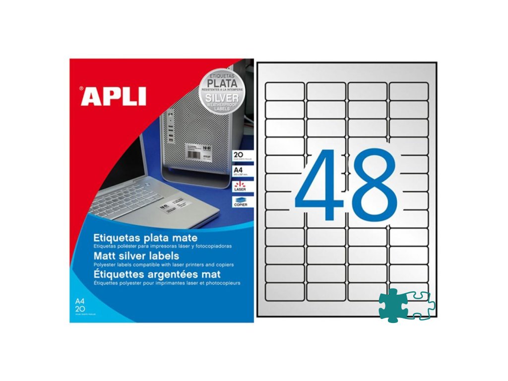 Etikety polyesterové 45,7x21,2mm APLI A4 20 hárkov strieborné