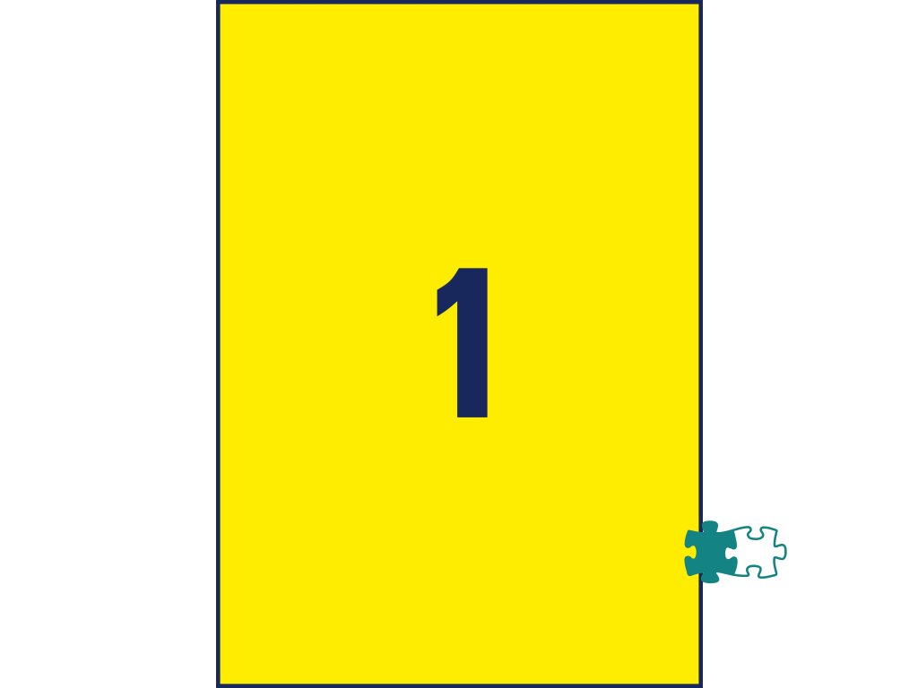 a vhodné aj pre vonkajšie použitie. Rozmery v mm : 210 × 297. Farba žltá. Etikety na hárku 1 kus. Balenie 20 hárkov.