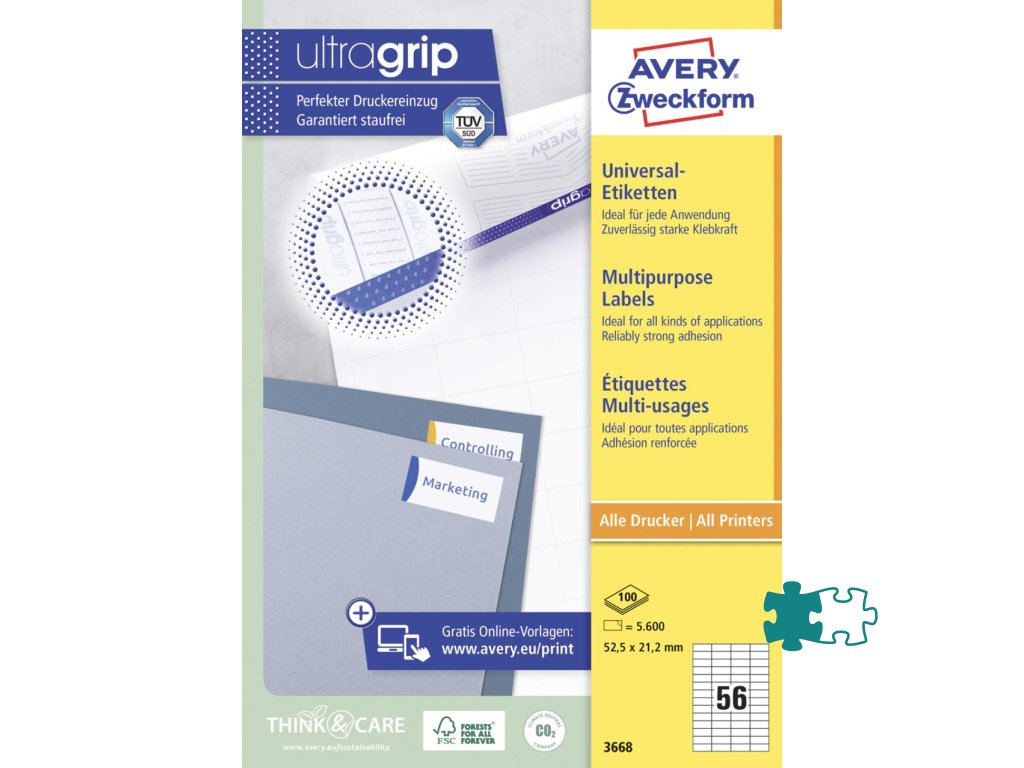 Biele univerzálne etikety vhodné na každodenné použitie v atramentových a laserových tlačiarňach a kopírovacích strojoch. Vďaka inovatívnej technológie ultragrip sa môžete spoľahnúť na bezchybné natiahnutie archu a tlač bez zasekávania. Bezpečnostný okraj QCT zabraňuje zanášaniu tlačiarne lepidlom. Pre laserové tlačiarne testované a certifi kované TÜV SÜD. Vysoká lepivosť na rôznych povrchoch. Ostrá tlač bez bez rozmazávania. Etikety sú vyrobené spôsobom šetrným k životnému prostrediu, majú certifi káciu FSC®, sú bielené bez použitia chlóru. Šablóny a softvér pre jednoduchú a rýchlu tlač etikiet k dispozícii zdarma. U niektorých rozmerov systém QuickPEEL™ na rýchlejšie odlepenie etikiet. Formát A4. Balenie 100 hárkov. Farba biela.Dodatočné parametre