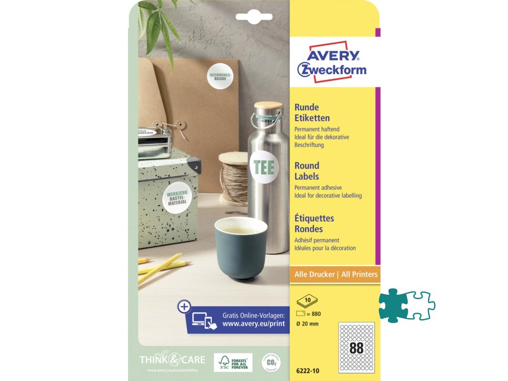 Etikety univerzálne kruhové 20mm Avery A4 10 hárkov