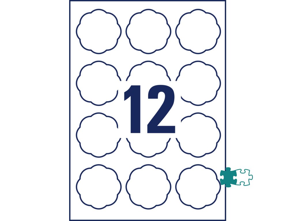 Etikety v tvare kvetu 60x59,5mm Avery 10 hárkov biele