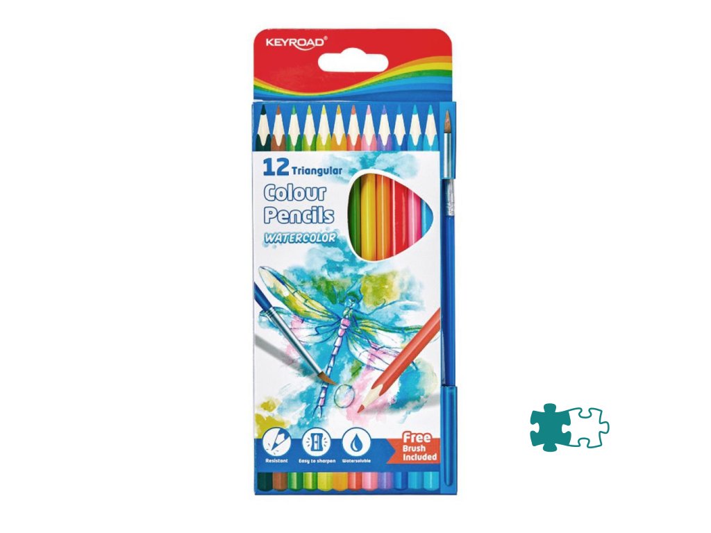 Akvarelové trojuholníkové ceruzky, na suché a mokré kreslenie, akvarel rozpustný vo vode. Odolné a ľahko sa brúsia. S mäkkým, bohato pigmentovaným grafitom, hrúbka: 3,0 mm. V sade 12 ks, plus 1 ks štetec. Farba: mix farieb.Dodatočné parametre