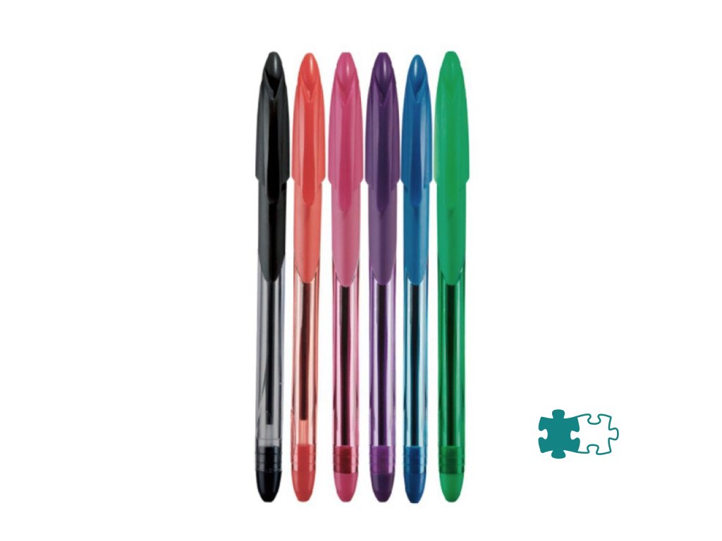 Guľôčkové pero Soft Jet. Priemer guľôčky: 0,7 mm. 6 kusov v blistri. Farba: mix farieb.Dodatočné parametre