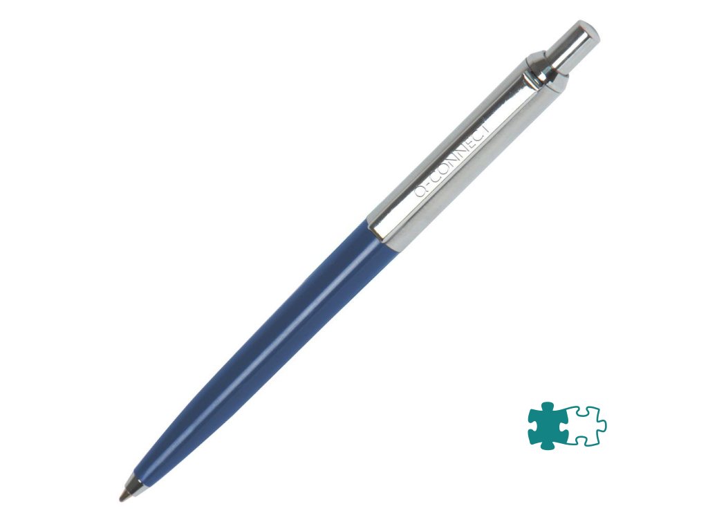 Guľôčkové pero v klasickom dizajne, plast/ kov s pevným kovovým klipom, nápis v modrej farbe. Šírka stopy: M. Farba modrá.Dodatočné parametre