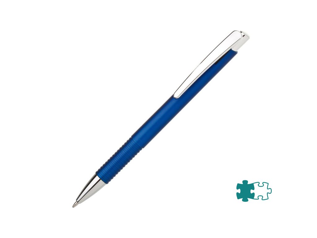 Guľôčkové pero plastové LASTI s vrúbkovaným úchopom a doplnkami v striebornej farbe. Modrá náplň X-20. Farba modrá.Dodatočné parametre