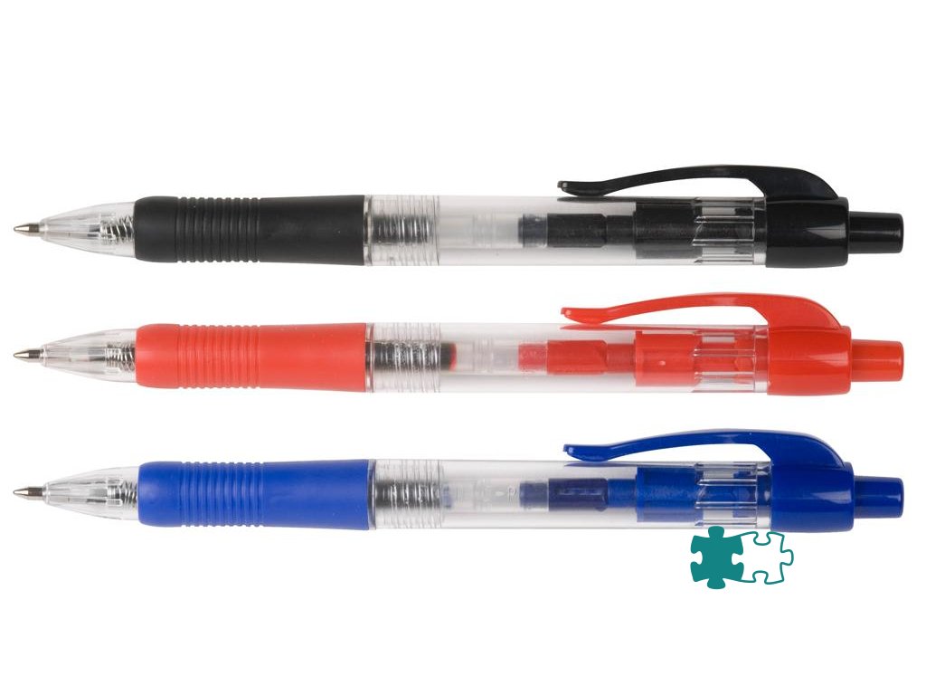 Klikacie guľôčkové pero s klipom a pogumovaným gripom pre lepšie držanie. Hrot 1 mm, šírka stopy 0,7 mm. Väčšie balenie 10 ks v jednej farbe.Farba náplne: červená