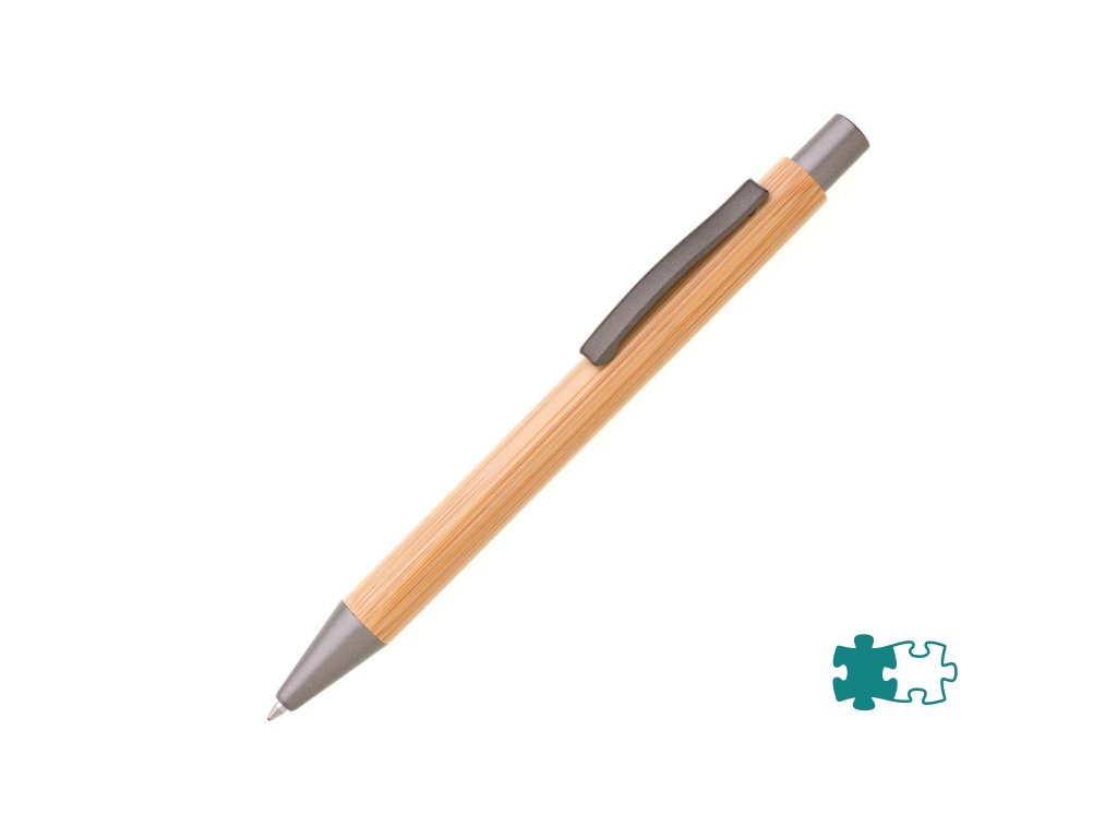 Guľôčkové pero s bambusovým rovným telom, matnými sivými doplnkami a kovovým klipom. Náplň modro píšuca veľkoobsahová.Dodatočné parametre