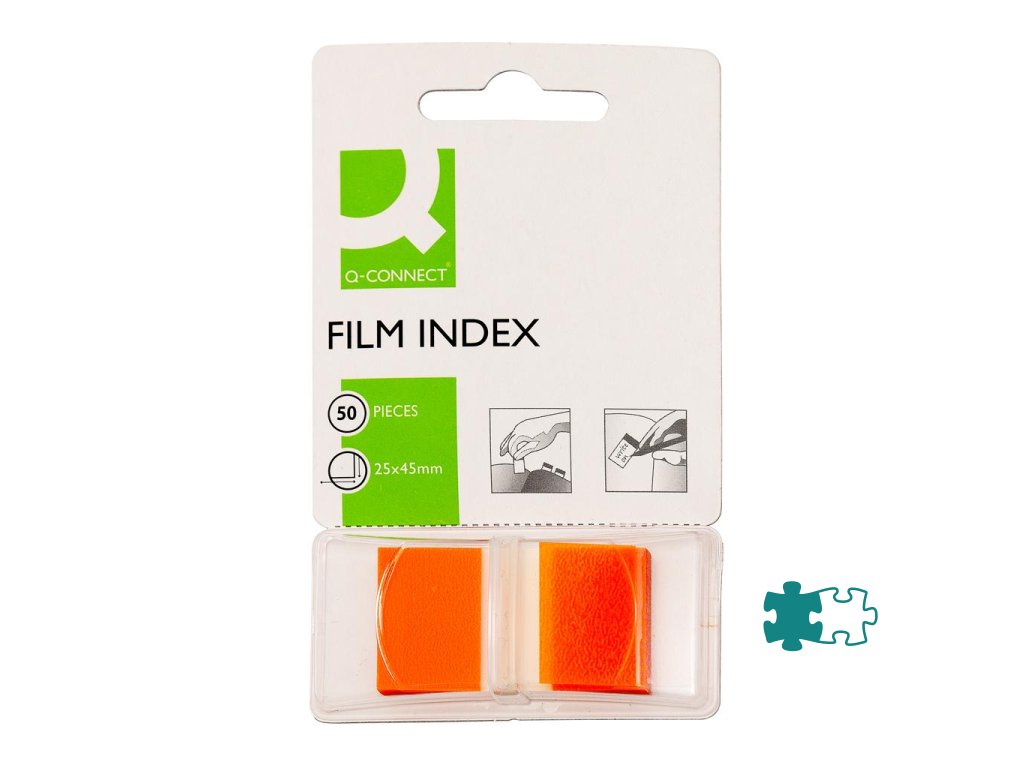 Indexové fóliové lístky, popisovateľné a snímateľné. Rozmery 25 × 43 mm. V balení 50 lístkov. Farba oranžová.Dodatočné parametre