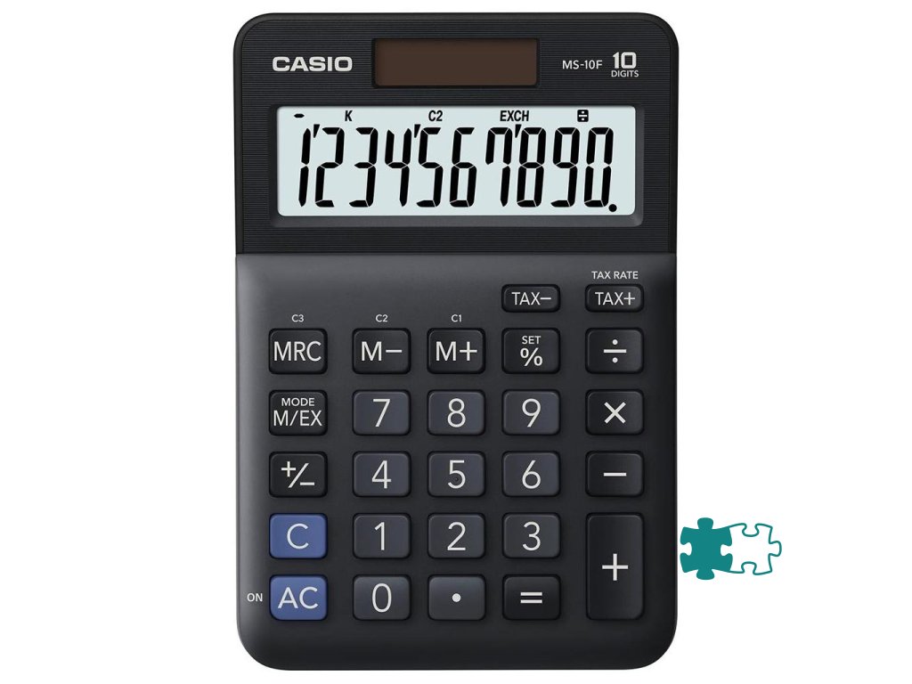 Stolová kalkulačka s veľkým 10-miestnym maticovým displejom, plastovými tlačidlami a pomocnými tlačidlami na výpočet daní. Výpočet %, 3 tlačidlá na prácu s pamäťou, zmeny znamienka +/-, percentuálna marža, zobrazenie použitej funkcie +,, ×, ÷, označenie oddeľovania po tisícoch, ukladanie operácií do vyrovnávacej pamäte, konverzia času, duálne napájanie (solárne + batéria), rozmery 103×145×31 mm.Dodatočné parametre