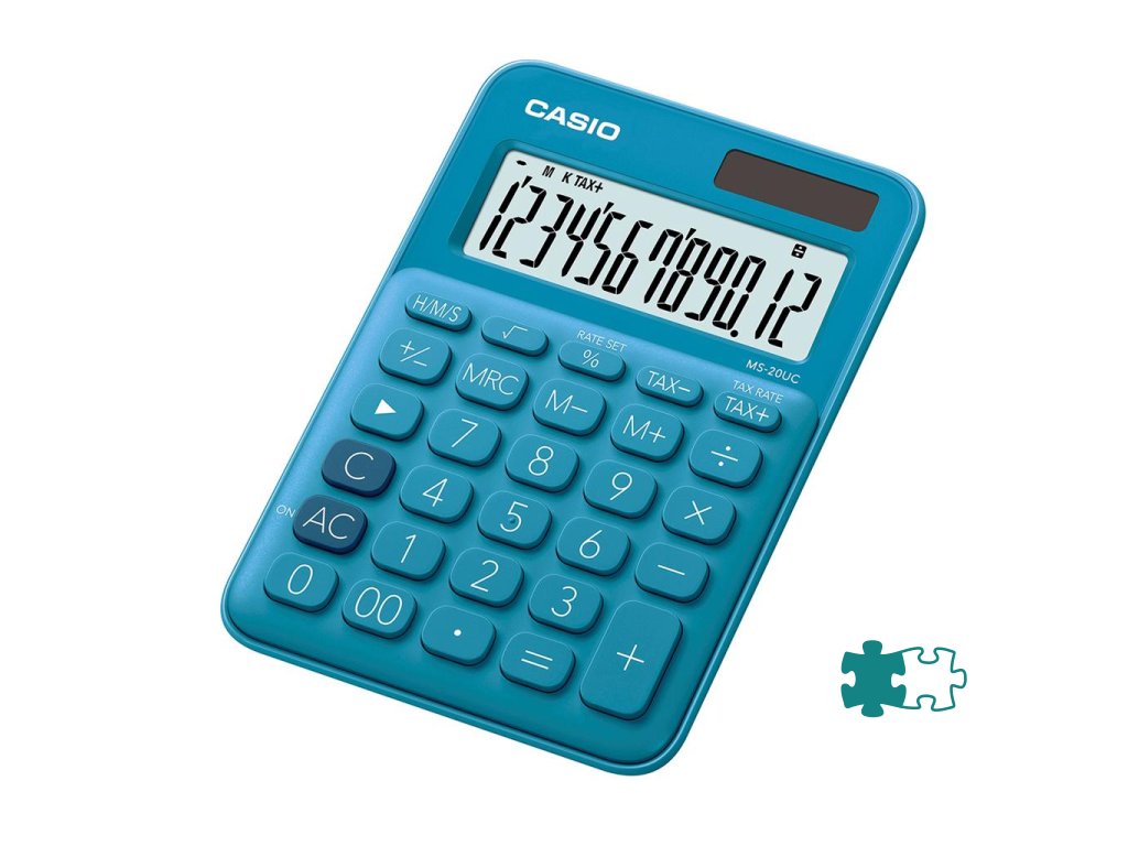 Stolová kalkulačka s veľkým 12-miestnym LCD displejom. Farba modrá.Technická špecifi kácia