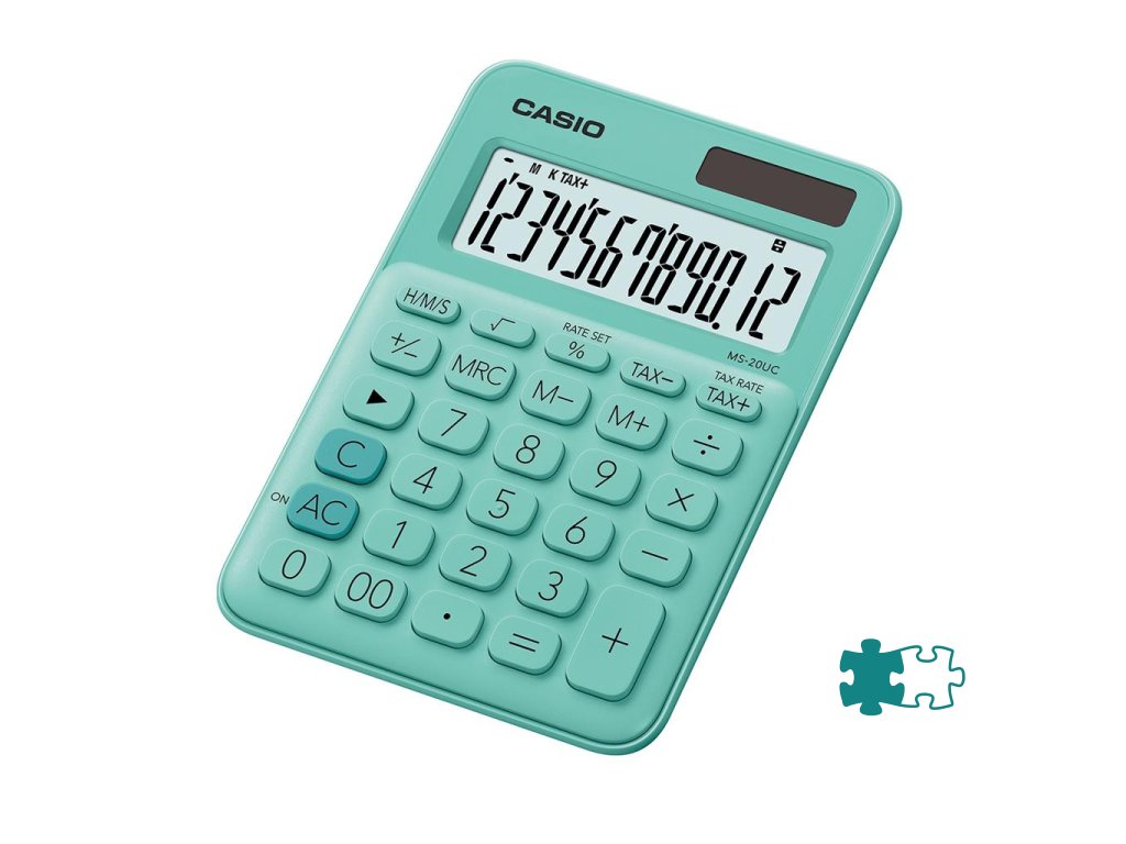 Stolová kalkulačka s veľkým 12-miestnym LCD displejom. Farba zelená.Technická špecifi kácia