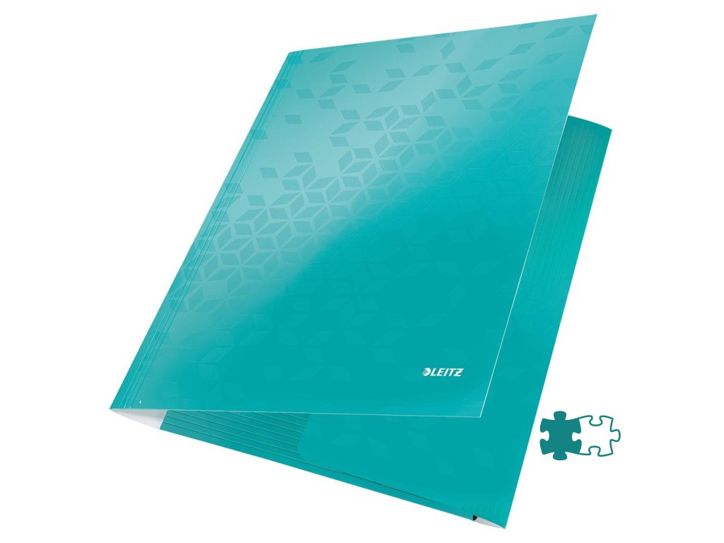 Obal s tromi chlopňami a elastickými gumičkami rady WOW v žiarivej farbe zo špeciálneho kartónu s perfektným farebným efektom. PP laminácia chráni farby a dáva výrobku lesklý vysokokvalitný vzhľad.Farba:ľadovo modrá