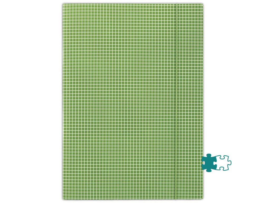 Kartonový obal vyrobený z lepenky s hmotnosťou 400g. Jednostranne potiahnutý vysoko lesklým tlačovým lakom, okrúhla vertikálna guma vo farbe obalu chráni obsah pred vykĺznutím. Károvaná potač. Formát: A4. Farba zelená. Rozmery 232 x 317 mm.Dodatočné parametre