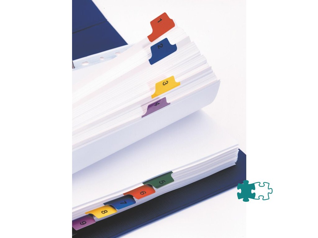 Rozraďovač vyrobený z kvalitného silného kartónu. Formát A4, vystužené eurodierovanie, farebné plastové rozlišovacie okraje, popisovateľný titulný list s farebnou potlačou na jasnú identifikáciu obsahu. Balenie jedna sada v polyesterovom sáčku. Väčšie balenie 10 sád.Formát: A4