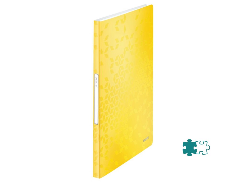 Katalógová kniha na prezentáciu dokumentov formátu A4, do ktorých sa často nahliada. Vyrobená z polypropylénu v dizajne WOW v žiarivých farbách. Vybavená 40 čírymi vreckami hrúbky 45 mic. a samolepiacou chrbtovou etiketou na popis. Väčšie balenie 10 ks. Kapacita 80 listov. Rozmery (š × v × h) 233 × 310 × 16 mm. Farba žltá.Dodatočné parametre
