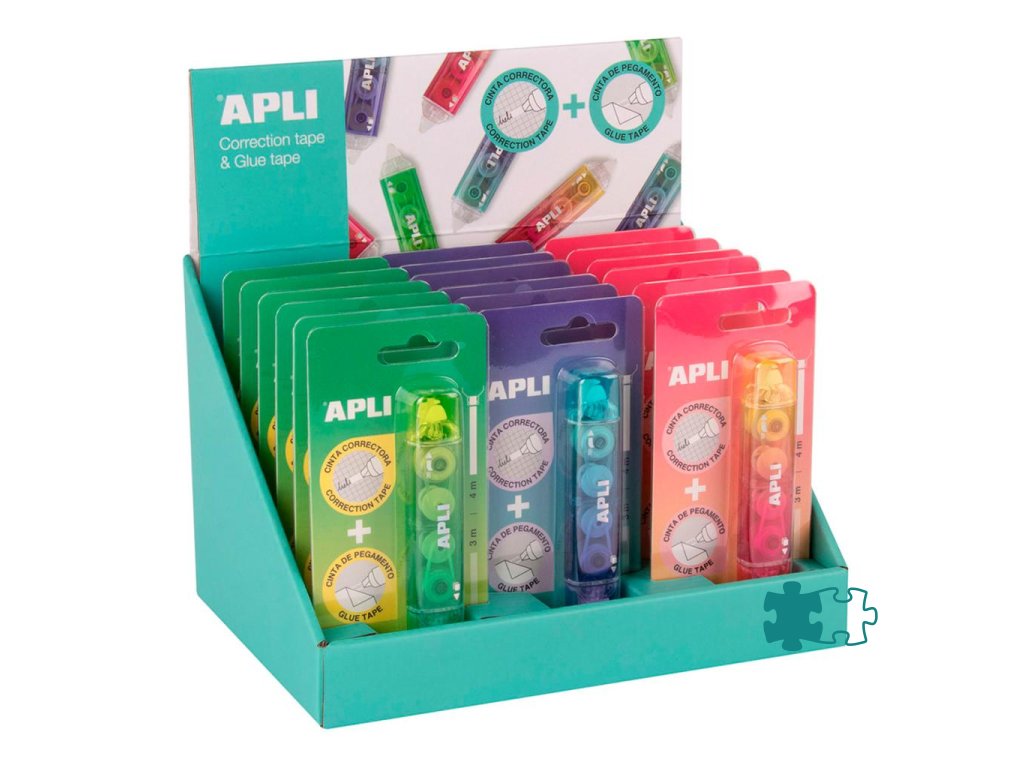 Korekčný roller a lepidlo APLI 2v1, mix farieb