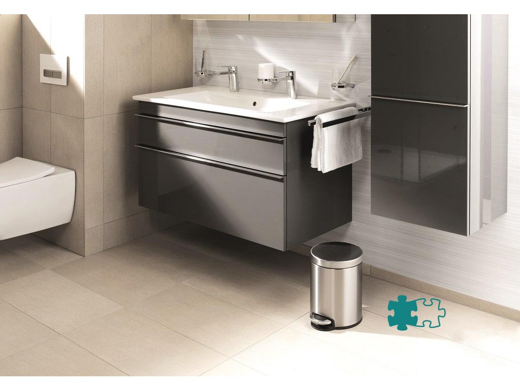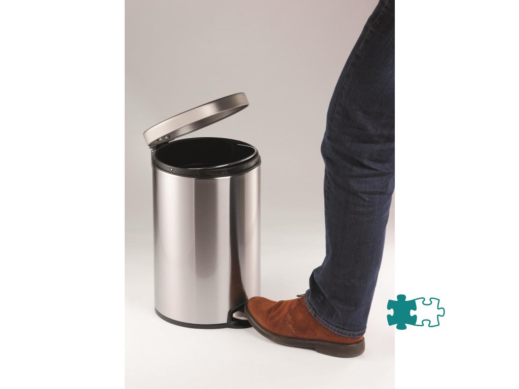 Odpadkový kôš na papier z nerezovej ocele vybavený vyberateľnou vnútornou nádobou z plastu a plastovou objímkouna vrecko na odpadky. Spodná časť z plastu proti korózii a pre lepšiu stabilitu. Veko na pedál sa zatvára ticho. Úprava z nerezovej ocele je potiahnutá vrstvou proti neželaným odtlačkom prstov. Objem 5 l, rozmery 260 x 290 mm.