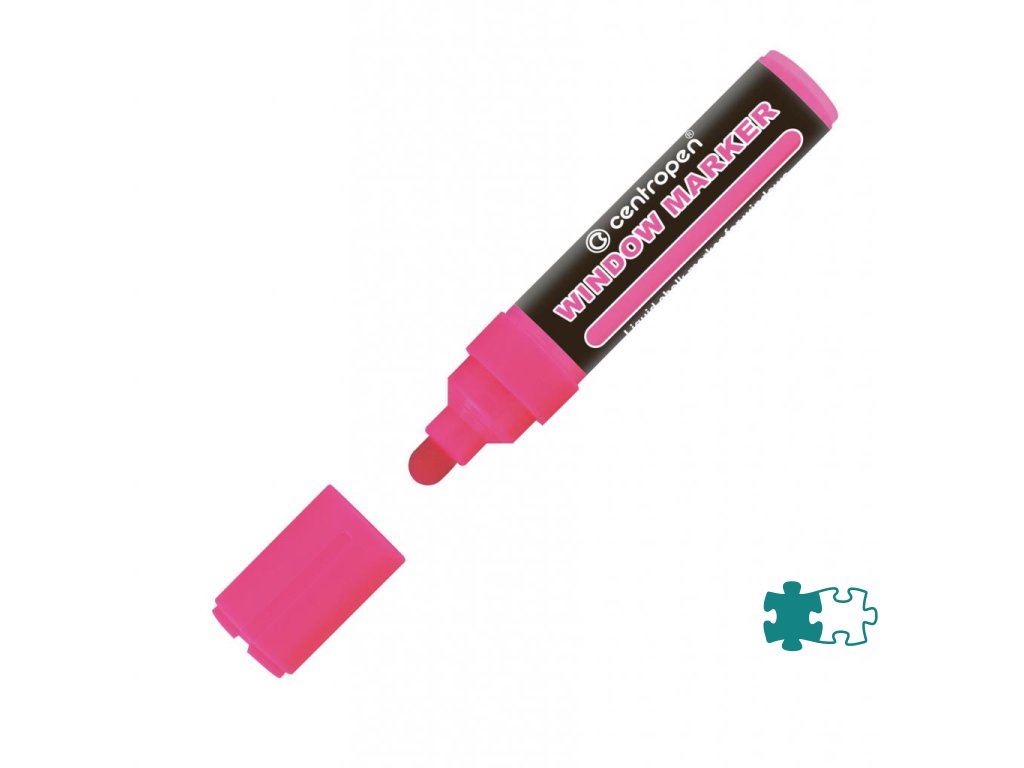 Špeciálny popisovač na neporézne povrchy (okná, zrkadlá, výklady). Tekutá krieda na vodnej báze so silnými krycími schopnosťami, svetlostála, stierateľná. Guľatý hrot, šírka stopy 3 - 4 mm. Väčšie balenie 5 ks v jednej farbe. Farba ružová.Dodatočné parametre